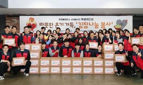 ▲ 투썸플레이스 임직원들이 지난 14일 마장동 축산물센터 고객센터에서 김장 봉사를 실시한 뒤 기념 촬영을 하고 있다. 이날 담근 김치 250포기는 마장동 주민센터를 통해 지역 내 취약 계층 가구에 전달됐다(사진 제공 =투썸플레이스)프리미엄 디저트 카페 투썸플레이스는 지난 14일 서울시 성동구 마장동 축산물시장에서 겨울맞이 김장 나...