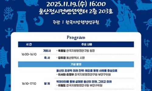 한국지방행정연구원(원장 육동일)은 11월 19일(수) 오후 4시 울산전시컨벤션센터(UECO)에서 ‘지방자치 30년, 개혁과 성공의 새 길을 열다!’를 주제로 특별 콘퍼런스를 개최한다. 본 행사는 ‘2025 대한민국 지방시대 엑스포’의 공식 프로그램 중 하나로, 지방자치 시행 30주년을 기념하고 향후 30년을 준비하기 위한 정책적 방향을 모...