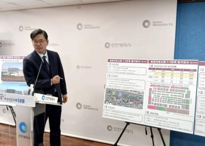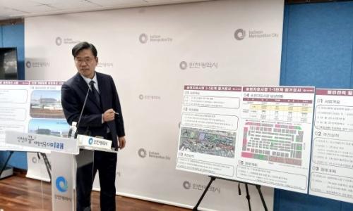 ▲ 김준성 글로벌도시국장이 18일 시청 브리핑룸에서 글로벌도시국 소관 현안과 관련해 기자브리핑을 하고 있다.(사진=인천타임스)인천시가 민선8기 1호 공약인 ‘제물포르네상스 프로젝트’를 본격 실행하며 원도심 활성화와 글로벌 도...
