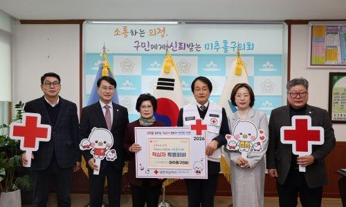 ▲ [미추홀구의회 제공]인천시 미추홀구의회(의장 전경애)는 2월 4일 의회 의장실에서 전경애 의장과 장규철 부의장을 비롯한 상임위원장들과 조의영...