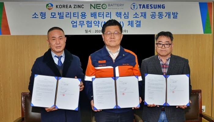 ▲[ (왼쪽부터) 김종학 태성 대표이사, 김승현 고려아연 온산제련소장, 정준식 네오배터리머티리얼즈코리아 부대표/고려아연 제공]고려아연(회장 최윤...