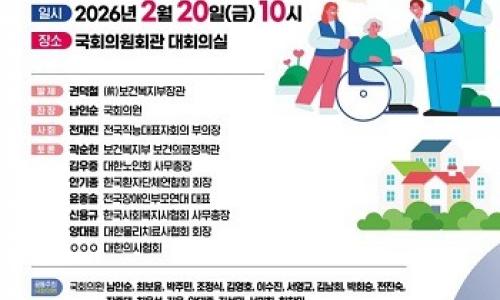 대한작업치료사협회가 대한의료기사단체총연합회와 함께 ‘의료기사 등에 관한 법률’ 개정을 위한 국회 대토론회 ‘수요자 중심의 성공적 통합돌봄 시행을 위한 토론회’를 공동주최한다.이번 토론회는 오는 2월 20일(금) 서울 국회의원회관 대회의실에서 개최되며, 의료기사 직역 단체 관계자와 보건의료 전문가, 국회 및 정부 관계자 등이 참석해 현행 법...