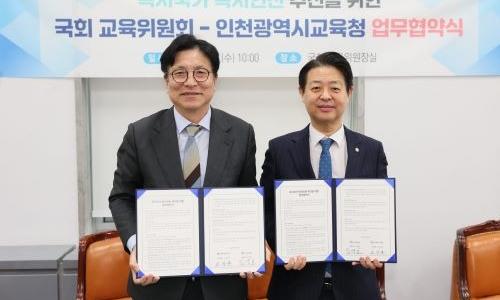 인천시교육청은 18일 도성훈 교육감과 김영호 교육위원장을 비롯해 양측 관계자들이 참석한 가운데, 국회 교육위원회와 ‘독서국가 독서인천’ 추진을 위한 업무협약을 체결했다.▲ [왼쪽 도성훈 교육감,김영호 교육위원장/인천시교육청 제공]국회 교육위원장실에서 열린 이번 협약식은 인공지능(AI) 시대에 필수적인 창의·비판적 사고 역량을 함양...