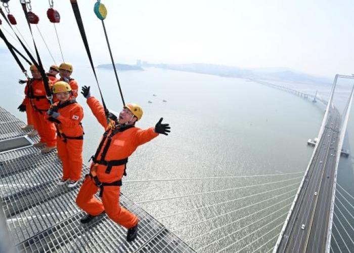 유정복 시장이 3월 25일 오후 청라하늘대교 관광시설 현장을 찾아 시설 운영 계획 및 안전 대책 등 개장 준비 상황을 면밀히 살폈다.▲ (사진=유정복 시장이 25일 청라하늘대교에서 개장을 앞둔 관광시설을 점검하고 있다./인천시 제공)...
