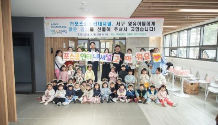 인천 인천 서구청장 강범석은 지난 31일 포레나루원시티 아파트 커뮤니티센터에서 ㈜포스코인터내셔널(대표이사 이계인)으로부터 보육시설 지원 물품(공...