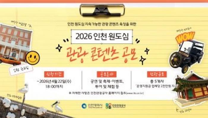 인천관광공사(사장 유지상)가 오는 4월 22일까지 원도심의 숨은 매력을 발굴하기 위한‘2026 인천 원도심 관광 콘텐츠 공모’를 실시한다.&nb...