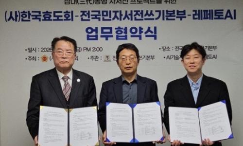 인공지능(AI) 기술이 파편화된 현대 가족의 대화 물꼬를 트고 어르신들의 소중한 삶을 기록하는 ‘디지털 효도’의 도구로 변신한다.▲ (전국민자서전쓰기본부 제공)한국효도회(이사장 이태성), 전국민자서전쓰기본부(이사장 오봉신), 레페토AI(대표 이대범)는 지난 3일 오후 2시 서울 강남구 소재 전국민자서전쓰기본부에서 ‘삼대(三代) 동행 자서전...