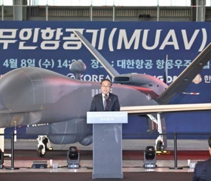 대한민국을 24시간 지킬 '하늘의 눈'인 중고도정찰용 무인항공기 양산 1호기 출고식이 열렸다.방위사업청은 8일 부산 대한항공 테크센터에서 중고도...