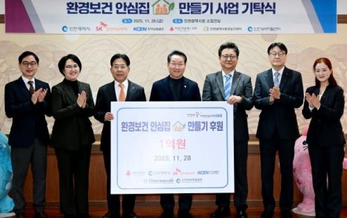 ▲사진=인천시 제공 (왼쪽부터 최원준 인천광역시 환경보건센터장, 조부현 인천광역시 자활센터장, 조상범 인천사회복지공동모금회장, 유정복 인천시장, 홍욱표 SK인천석유화학 부사장, 권규돈 한국남동발전 영흥발전본부 처장)인천시는 11월 28일 SK인천석유화학㈜(대표이사 노상