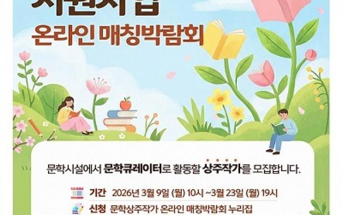 문화체육관광부는 한국문화예술위원회와 함께 올해 '문학상주작가 지원사업'에 참여할 작가를 이날부터 오는 23일까지 공모한다.'문학상주작가 지원사업'은 작가가 도서관, 서점, 문학관 등에 머물며 주민을 위한 문학 프로그램을 기획하고 평균 주 3회 운영할 수 있게 인건비와