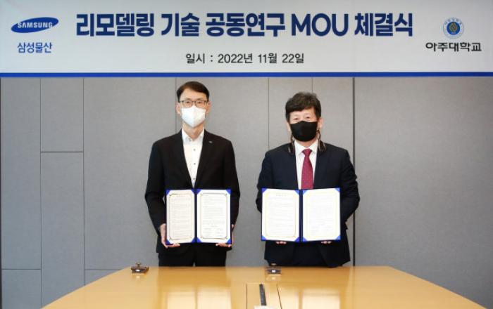 삼성물산 건설부문(이하 삼성물산)과 아주대학교가 11월 22일 오전 10시 30분 서울특별시 강동구 상일동 삼성물산 본사에서 리모델링 신규 기술 공동연구 및 개발을 위한 업무협약(MoU)을 체결했다.삼성물산과 아주대학교는 이번 업무협약을 계기로 주택 리모델링 관련 신규