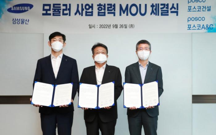 삼성물산 건설부문과 포스코건설, 포스코A&C가 글로벌 모듈러 시장 진출을 위해 손을 잡는다.삼성물산 건설부문(이하 삼성물산)과 포스코건설, 포스코A&C 3사는 ‘모듈러 사업 협력 업무협약(MOU)’ 을 체결하고, 각 사의 역량과 강점을 활용해 국내·외 모듈러 시장에 공
