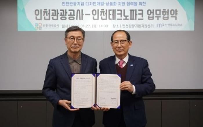 ▲ [왼쪽부터 인천테크노파크 이주호 원장, 인천관광공사 유지상 사장/인천관광공사 제공]인천관광공사(사장 유지상)와 인천테크노파크(원장 이주호)는 27일 인천 관광기업의 경쟁력 강화와 지속 가능한 성장 지원을 위해 업무협약을 체결했다. 이번 협약은 관광공사의 관광기업 대
