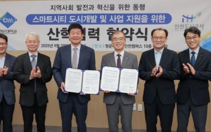 iH(인천도시공사)는 청운대학교(총장 정윤)와 「스마트시티 도시개발 지원 협약」을 체결했다고 29일 밝혔다.이번 협약은 iH와 청운대간 도시개발·주거복지의 현장 노하우 공유 및 스마트시티 연구 역량 결합 등 산학협력 지원체계 구축을 통한 지속가능한 스마트시티 도시개발을