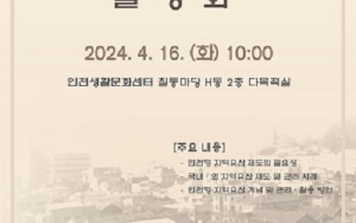 근현대 지역유산에 대한 관리 및 활용 방안 마련을 위해 오는 4월 16일 오전 10시부터 인천생활문화센터 칠통마당 다목적실(중구 제물량로 218번길 3)에서 주민, 관계자 등을 대상으로 설명회를 개최한다고 밝혔다.지역유산이란 지정‧등록되지 못한 국가유산 중 별도의 가치