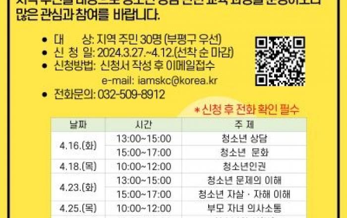 부평청소년상담복지센터가 2024년 제9기 ‘카운슬러대학’ 참여자를 모집한다. ‘카운슬러대학’은 대학 교수 및 청소년 전문가로 구성된 강사진이 청소년 상담에 관해 주민들에게 강의하는 프로그램이다. 격년으로 운영되어 2022년 제8기 이후 2년 만에 진행된다. 교육과정은