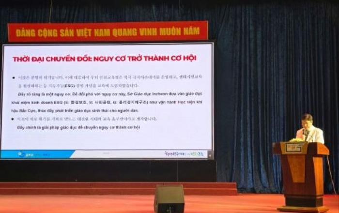 도성훈 교육감은 지난 5일 베트남 호치민국립사범대학에서 학생 및 교직원 3백여 명을 대상으로 ‘디지털 대전환 시대를 위한 교육의 방향’을 주제로 강연했다. 도성훈 교육감은 인공지능과 생성형 AI 등장으로 촉발된 대전환 시대에 인천의 주요 교육정책 중 하나인