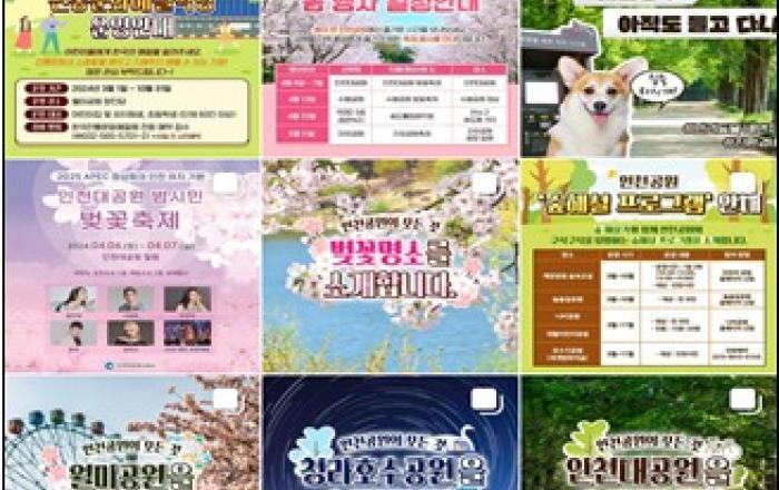인천시 공원의 다양한 소식을 시민들에게 전달하기 위한 소셜네트워크(SNS)를 개설했다고 밝혔다.시는 ‘모이자’(모으고 이용하고 자랑하자) 공원 이용 활성화의 일환으로 대시민 홍보를 위한 소셜네트워크(SNS) 채널을 개설하여, 각 사업소 및 군・구별로 홍보해 왔던 공원