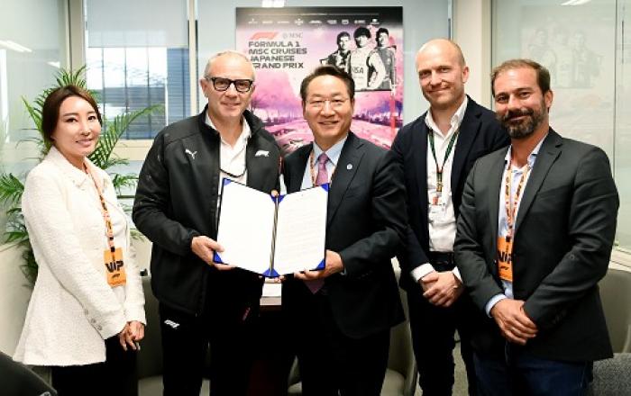 6일 일본을 전격 방문한 유정복 인천시장이 스즈카 그랑프리에 참석 중인 포뮬라 원 그룹의 스테파노 도미니칼리 CEO 등 F1 책임자 등을 만나 F1 인천 그랑프리 개최 의향서 전달[인천시 제공]유정복 인천시장이 4월 6일 일본을 전격 방문해 스즈카 그랑프리에 참석 중인