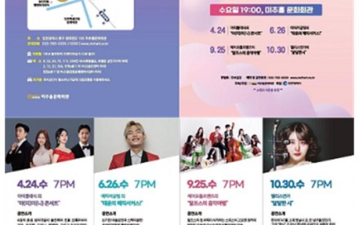 인천광역시는 (사)인천예총이 위탁 운영하는 미추홀문화회관에서 문화 아카데미와 기획공연을 개최한다고 밝혔다. 먼저‘미추홀 소소(炤炤) 음악회’가 4월부터 4차례 진행된다.▲4월 24일‘아띠클래식의 아(띠)미(니)콘서트’를 시작으로 ▲6월 26일‘매직저글링의 태윤의 매직서