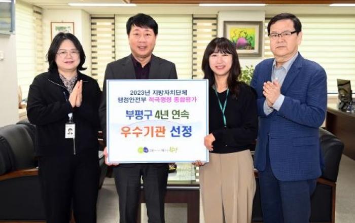 부평구가 행정안전부 주관 지방자치단체 적극행정 평가에서 전국 자치구 중 5위를 달성, 4년 연속 우수기관으로 선정되는 성과를 거뒀다.평가가 최초로 시행된 2020년부터 2021년과 2022년에 이어 4년 연속 ‘적극행정 우수기관’으로 선정된 것은 전국 자치구 중 부평구