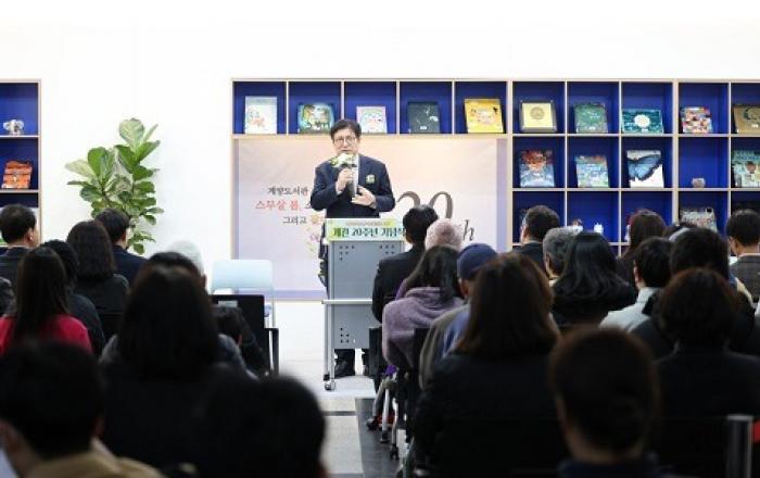 도성훈 인천광역시교육감은 지난 22일 열린 인천시교육청계양도서관 20주년 기념식에 참석해 “책 읽는 문화, 글쓰는 문화, 일상이 배움이 되는 문화를 함께 만들어 달라”고 말했다.계양도서관은 관내 ‘비움’ 갤러리에서 ‘계양도서관 스무 살 봄, 소통과 공감 그리고 같이’를