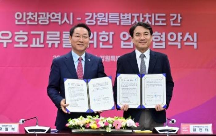 인천광역시는 3월 13일 강원특별자치도청에서 강원특별자치도와 ‘상생발전을 위한 우호교류 업무협약’을 체결했다고 밝혔다.인천시와 강원자치도는 수도권광역급행철도(GTX) 시대 개막을 계기로 대한민국을 선도하는 진정한 지방자치 시대의 필요성에 대해 공감하며 이번 협약에 이르