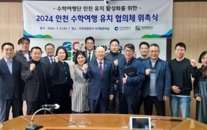 인천관광공사 백현 사장은 인천고유의 역사·문화 관광자원과 연계한 수학여행 유치 활성화를 위해 6일 ‘2024 인천 수학여행 유치 협의체’ 위촉식을 개최하고, 본격적인 유치 활동에 나섰다.‘2024 인천 수학여행 유치 협의체’는 지난 2월 27일까지 공개 모집으로 선정