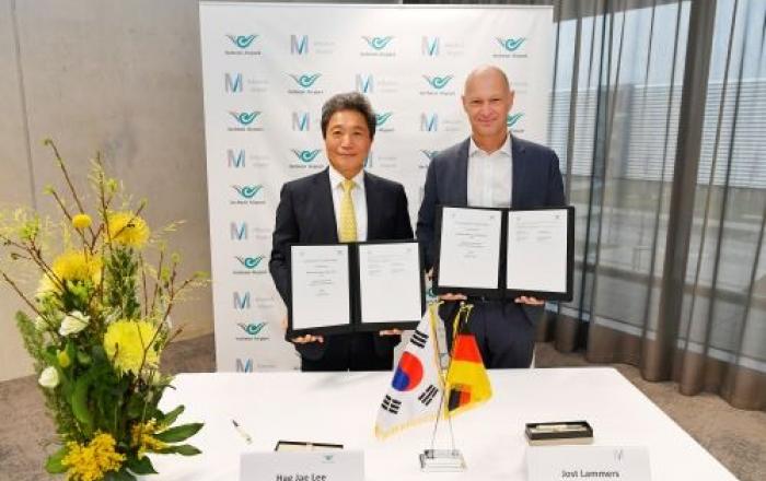 [사진제공=인천국제공항공사]이학재 사장은 현지시각 4일 오전(한국시각 4일 저녁) 독일 뮌헨공항 교육원에서 뮌헨공항과 ‘교육협력 확대를 위한 양해각서(MOU)’를 체결했다고 5일 밝혔다. 이날 양해각서 체결식에는 인천국제공항공사 이학재 사장, 뮌헨공항 요스트 람머스(J