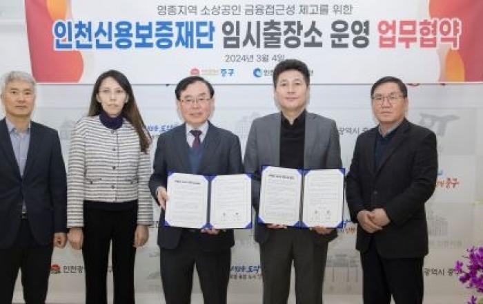 인천시 중구(구청장 김정헌)는 인천신용보증재단(이사장 전무수)과 지난 4일 중구 제1청 구청장실에서 ‘인천신용보증재단 영종국제도시 출장소 업무협약’을 체결했다고 밝혔다. 이번 협약은 영종국제도시에 인천신보 중부지점 출장소를 신설·운영함으로써 영종지역 소상공인과 청년 창