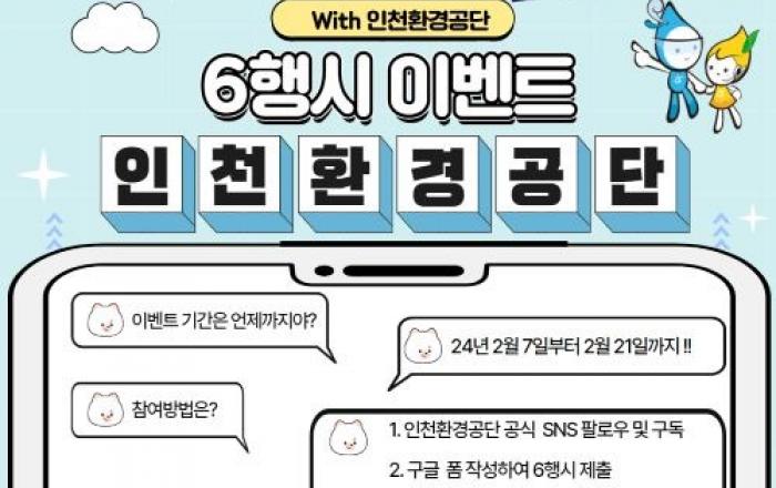 인천환경공단은 21일까지 창립 18주년을 맞아 시민들과의 소통을 위한 온라인 6행시 이벤트를 개최한다.2007년 2월 창립한 공단은 생활에서 버려지는 하수, 분뇨, 생활폐기물 등을 처리하는 환경기초시설을 안정적이고 전문적으로 운영하기 위해 설립한 지방공기업이다. 이에