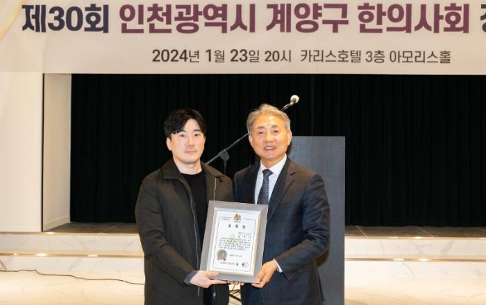윤환 구청장은 지난 23일 ‘제30회 계양구한의사회 정기총회’에서 구민 보건 향상과 지역사회 발전에 기여한 공이 큰 보건사업 유공자에게 표창을 수여했다. 계양구는 이날 투철한 사명감과 남다른 봉사정신으로 지역사회 발전과 사회봉사활동 및 각종 사업에 솔선수범하고, 구민의