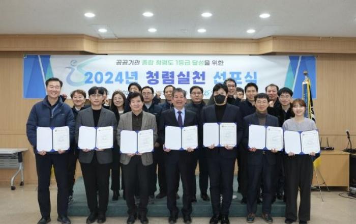 최계운 이장이 24일 본부 대회의실에서 3급이상 임・직원들 대상으로‘CEO 청렴 특강 및 청렴실천 선포식’을 개최했다고 밝혔다.이번 행사는 이사장이 직접 청렴 강사로 나서 투명한 조직문화 조성과 임직원의 청렴 윤리의식을 한층 높이고, 반부패 청렴실천 선포식을 통해 대