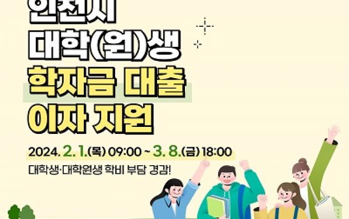 인천시는 ‘2024년 상반기 대학(원)생 학자금대출 이자지원 사업’ 참가자를 2월 1일부터 3월 8일까지 접수한다고 밝혔다.이 사업은 한국장학재단에서 대출받은 학자금의 이자를 지원하는 것으로, 이번에는 2023년 하반기(7~12월)에 발생한 이자를 지원한다. 매해 상·