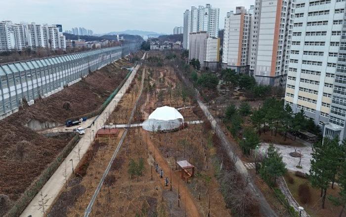 제2경인고속도로변(서창동 635, 641일원)에 유해 물질 확산을 막기 위한 4ha 규모의 기후대응 도시숲을 조성했다고 22일 밝혔다. 기후대응 도시숲은 고속도로 등에서 발생하는 공해 등의 유해 물질을 도심 생활권 지역으로 확산하는 것을 막기 위해 공해 발생원 주변에