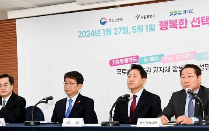 [사진제공=인천시]유정복 인천시장이 1월 22일 한국프레스센터에서 국토교통부장관, 서울특별시장, 경기도지사와 함께 만나 수도권 대중교통 서비스 혁신과 향상을 통한 새로운 대중교통의 미래를 위해 수도권 3개 시도와 정부가 함께 노력하기로 했다고 밝혔다.그간 수도권 지자체