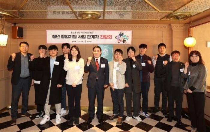 [사진제공=옹진군]옹진군 문경복 군수가 22일 개항로의 한 음식점에서 청년 창업지원 사업 관계자와 소통 간담회를 개최했다고 밝혔다.이번 간담회에는 2023년 인천 청년 로컬크리에이터 육성사업 옹진군 지역 참여자들을 초청해 섬 지역인 옹진군의 지리, 사회, 문화, 경제