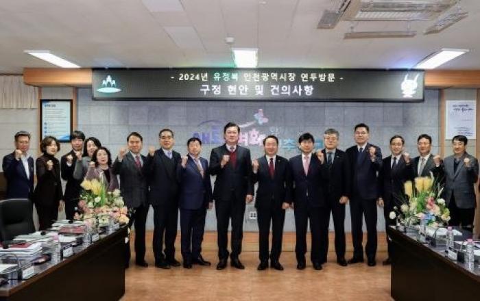 인천 미추홀구 이영훈 청장은 15일 올해 첫 유정복 인천시장 연두 방문 일정을 진행해 기관 현안 청취, 기자 및 구의원들 간 차담회, 구민과의 소통의 시간을 가졌다.유정복 시장은 이영훈 구청장을 비롯한 구 간부 공무원들과 주요 업무 보고회를 통해 구 현안에 대해 심도
