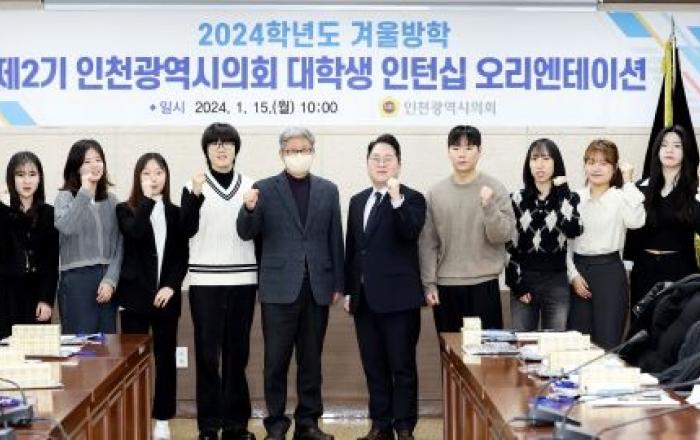 인천시의회는 15일부터 다음 달 23일까지 6주간 지역 대학생 10명을 대상으로 ‘2024년 겨울방학 제2기 대학생 인턴십’을 운영한다고 밝혔다. 특히 이번 인턴십은 2023년도 여름방학 기간 운영된 제1기 대학생 인턴십의 성공적인 운영 기반을 바탕으로 본회의 참관을