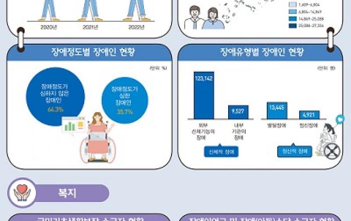 인천광역시는 ‘2023 인천시 장애인통계’ 결과를 인천시 누리집을 통해 공표했다고 밝혔다.2022년 12월 31일 기준 인천시 장애인 인구는 15만 1,035명으로 전체 인구 296만 7,314명의 5.1%를 차지하며, 전년보다 2,389명(1.6%) 증가했다. 성별로