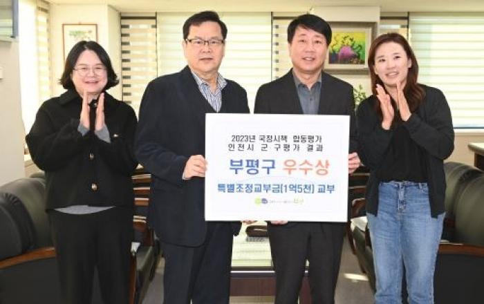 부평구는 2021년, 2022년도 장려상 수상에 이어 올해에는 우수상을 수상해 특별조정교부금 1억5천만 원과 포상금 1천500만 원의 재정인센티브를 받는다.앞서, 인천시는 2023년(‘22년 실적) 지방자치단체 합동평가를 위해 ‘지표별 추진실적’과 ‘2023년도의 사업