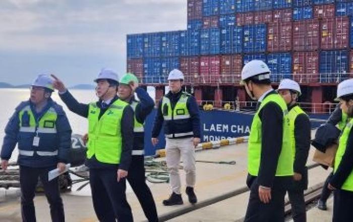 [사진제공 = 인천항만공사] 이경규 사장은 갑진년을 맞아, 올해 첫 CEO 행보로 2일 오후 인천신항 한진인천컨테이너터미널(HJIT)(인천광역시 연수구 송도동 인천신항대로 777) 및 ‘인천신항 1-2단계 컨테이너부두 하부공 축조공사' 건설현장을 시찰하고 현장