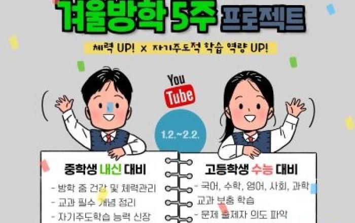 인천광역시교육청은 중·고등학생을 대상으로 교과(국어·수학·영어·사회·과학) 학습 동영상 콘텐츠 「중등 쌤튜브와 함께하는 겨울방학 5주 프로젝트」를 2024년 1월 2일부터 인천시교육청 공식 유튜브 채널에서 운영한다.프로그램은 중·고등학생의 방학 기간 자기주도학습을 지원