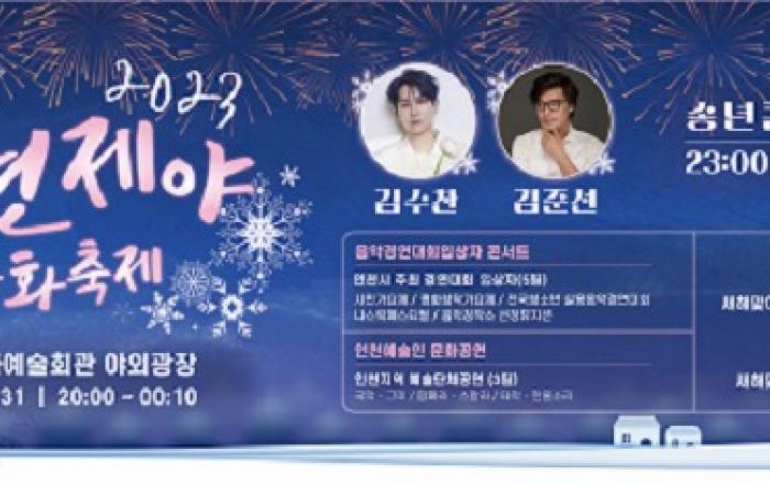 인천광역시는 송년제야 문화축제를 올해는 보다 많은 시민들이 참여하고 연말연시 축제 분위기를 한껏 느끼실 수 있도록 인천문화예술회관 야외광장에서 개최한다고 밝혔다. 이날 행사는 오후 8시 인천시민들이 참여하는 문화공연을 시작으로 팝페라-스칼라, 국악-그미, 타악-한울
