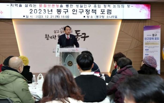 인천 동구 김찬진 구청장은 최근 동구청 소나무홀에서 지역 소멸에 대비한 ‘2023년 동구 인구정책 포럼’을 개최했다고 밝혔다. 이날 포럼에는 구민과 인구정책 분야 공무원, 동구 청년 로컬크리에이터(local creator) 등 80여명이 참여하였다. 로컬크리에이터는 지