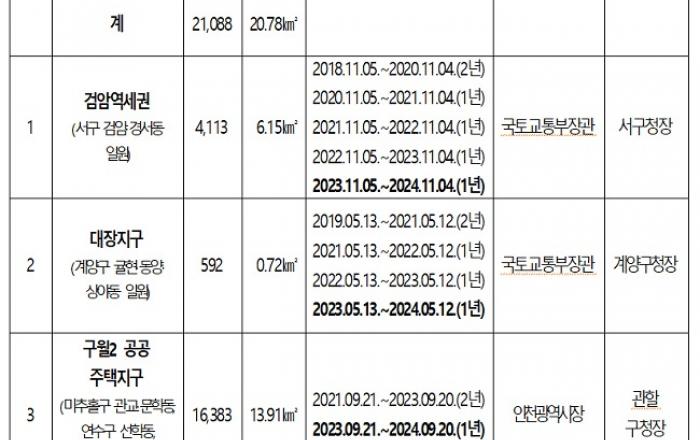 계양 테크노밸리 신도시 및 인근지역에 대한 토지거래허가구역이오는 12월 26일부로 해제된다.인천광역시는 국토교통부장관이 2018년 12월부터 토지거래허가구역으로 지정한 계양구 귤현·동양·박촌·병방·상야·방축동 일원 8.40㎢, 4,502필지가 12월 26일 자로 해제된