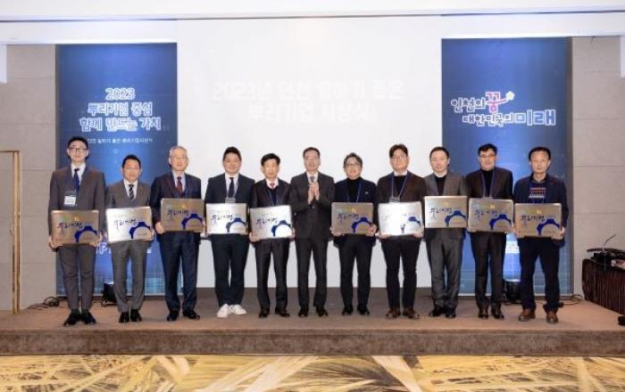 [사진제공=인천테크노파크]인천TP와 인천시는 지난 19일 송도센트럴파크호텔에서 ‘2023년 인천 일하기 좋은 뿌리기업’으로 선정된 10개사를 대상으로 표창 시상식을 개최했다고 밝혔다.올해는 ▲㈜이노디스 ▲㈜하이베로 ▲㈜신원기술 ▲㈜동인써모 ▲㈜대명아이넥스 ▲㈜일광메탈포