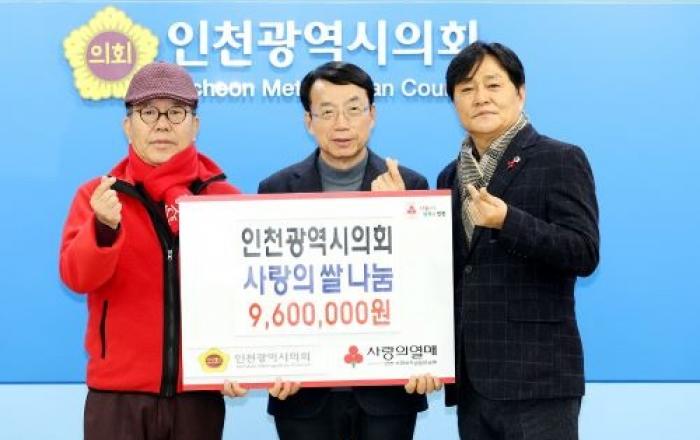 [사진제공=인천시의회]인천광역시의회가 지속적인 나눔 활동으로 지역사회에 귀감이 되고 있다. 인천시의회는 연말을 맞아 18일 의회 접견실에서 허식 의장을 비롯해 박용철 의원, 조상범 인천사회복지공동모금회 회장 및 관계자 등이 참석한 가운데 사랑의 쌀 기부금(960만 원