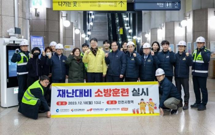 [사진제공=인천교통공사]인천교통공사는 인천도시철도 1호선 2개 역사에 AI기반 다중이용시설 피난안내시스템을 구축하고 인천시·남동소방서와 함께 합동소방훈련을 실시했다고 밝혔다.AI기반 다중이용시설 재난대피안내 시스템은 다목적 대피유도 생성 장치로 불꽃·열·연기를 신속하게