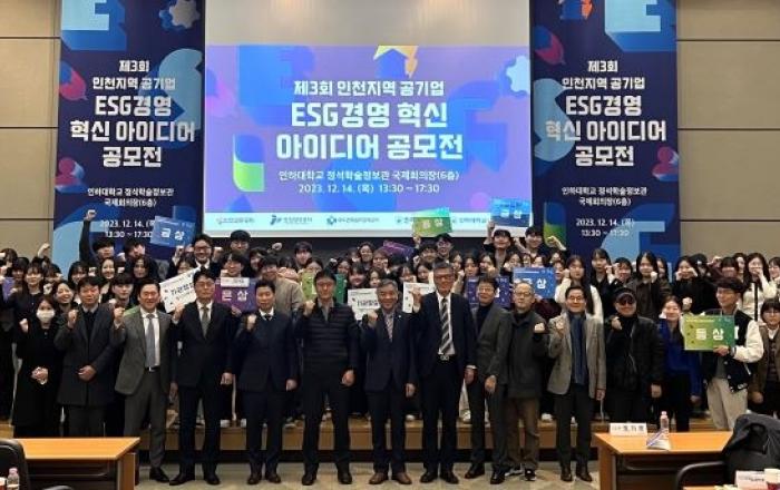 [사진제공=수도권매립지공사]송병억 사장은 지난 14일 인하대학교 정석학술정보관에서 ‘제3회 인천지역 공기업 ESG경영 혁신 아이디어 공모전’을 개최했다고 밝혔다.이번 공모전은 인천지역 공공기관이 인하대학교와 힘을 합쳐 지역의 ESG인재를 양성하기 위한 것이다. 매립지공